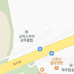 해오름마을중심상가 다락골, 숲속길마을3.6단지, 숲속길마을7단지, 교하차고지 방향268m