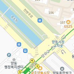 양동시장교차로 실시간 버스도착 정보 양동시장역(북) 방향