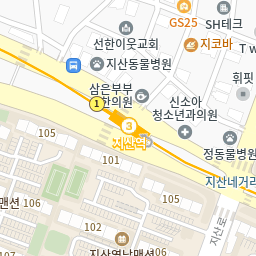 지산청구타운앞 동아스포츠센터(지산초교앞), 지산동서맨션앞 방향118m