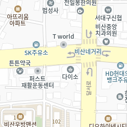 청라언덕(신남)역(8번출구) 매일신문사앞, 엘디스리젠트호텔건너 방향835m