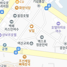 동초등학교 동광탕(국민연금공단), 여수고등학교, 마띠유호텔 방향257m