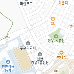 쌍용역예일병원계룡아파트 쌍용고입구, 쌍용역코오롱하늘채, 삼일원앙아파트 방향409m